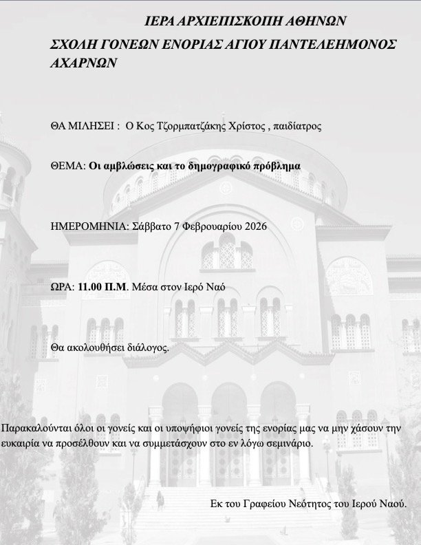 Ομιλία: Οι αμβλώσεις και το δημογραφικό πρόβλημα Αφήστε ένα Σχόλιο / Από Χρήστος Τζορμπατζάκης / 26/01/2026